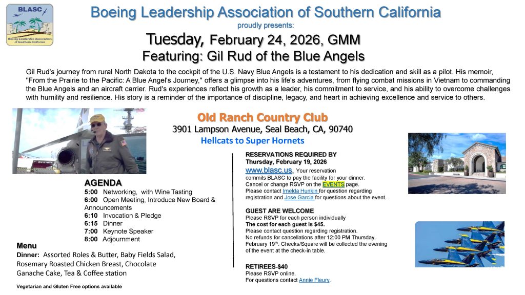 Join us on Tuesday, February 24 for a dinner to welcome guest speaker Gil Rud, a retired U.S. Navy Captain who served as the commanding officer and flight leader of the Blue Angels and went on to command an aircraft carrier during his distinguished naval career.